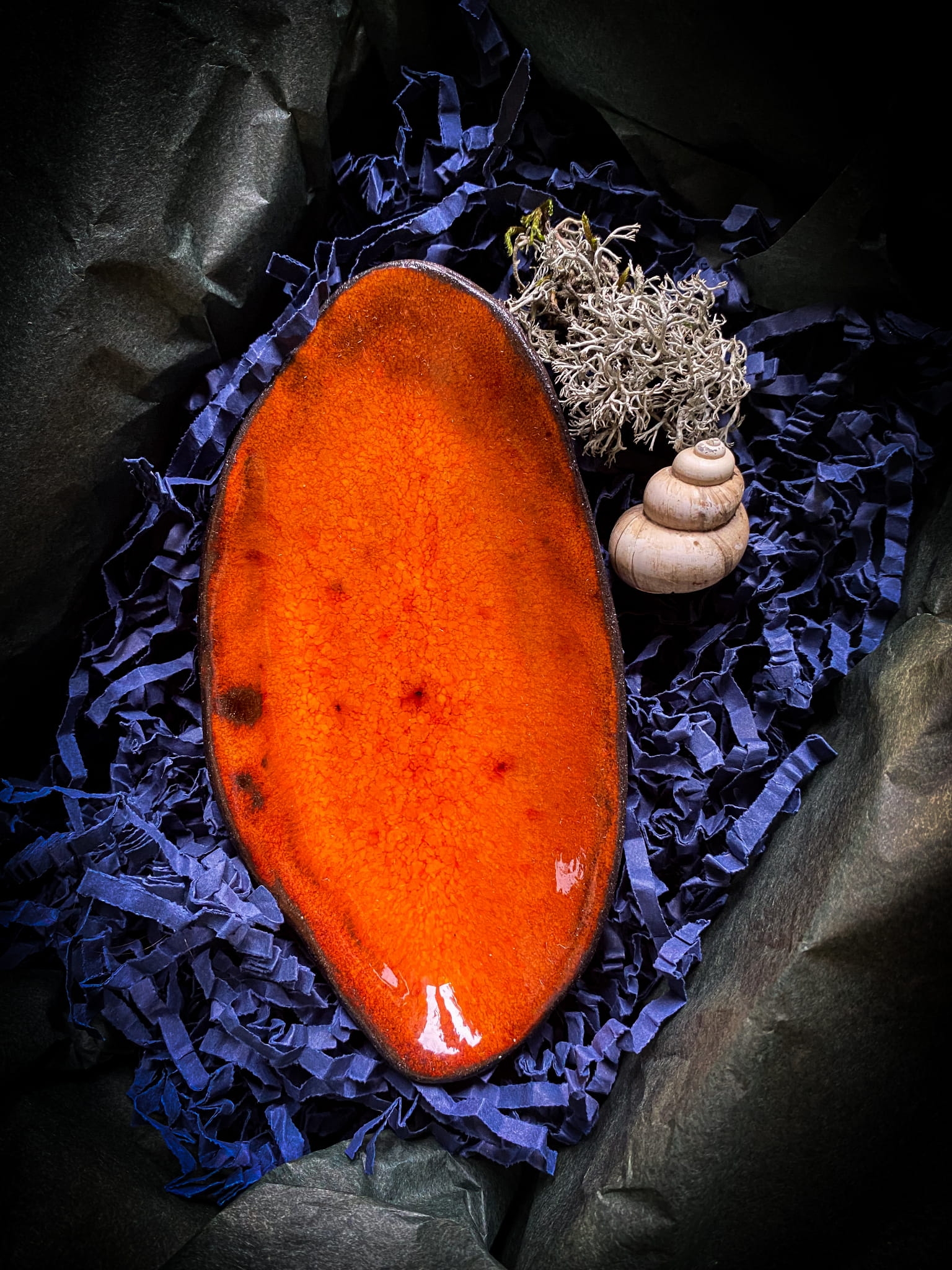 Ręcznie lepiona ceramiczna muszla Szczeżuja w kolorze soczystego oranżu