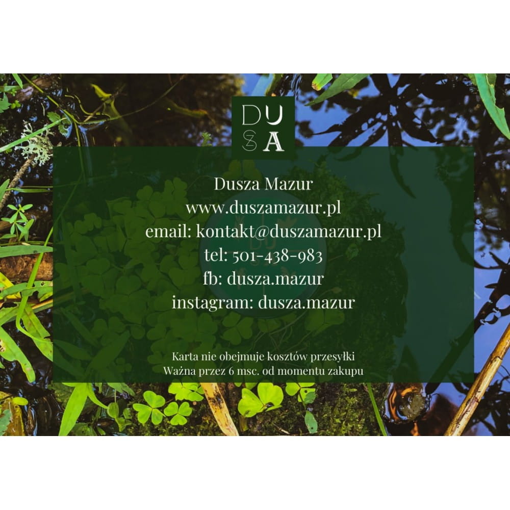 Kartę można wykorzystać na wszystkie produkty w sklepie www.duszamazur.pl