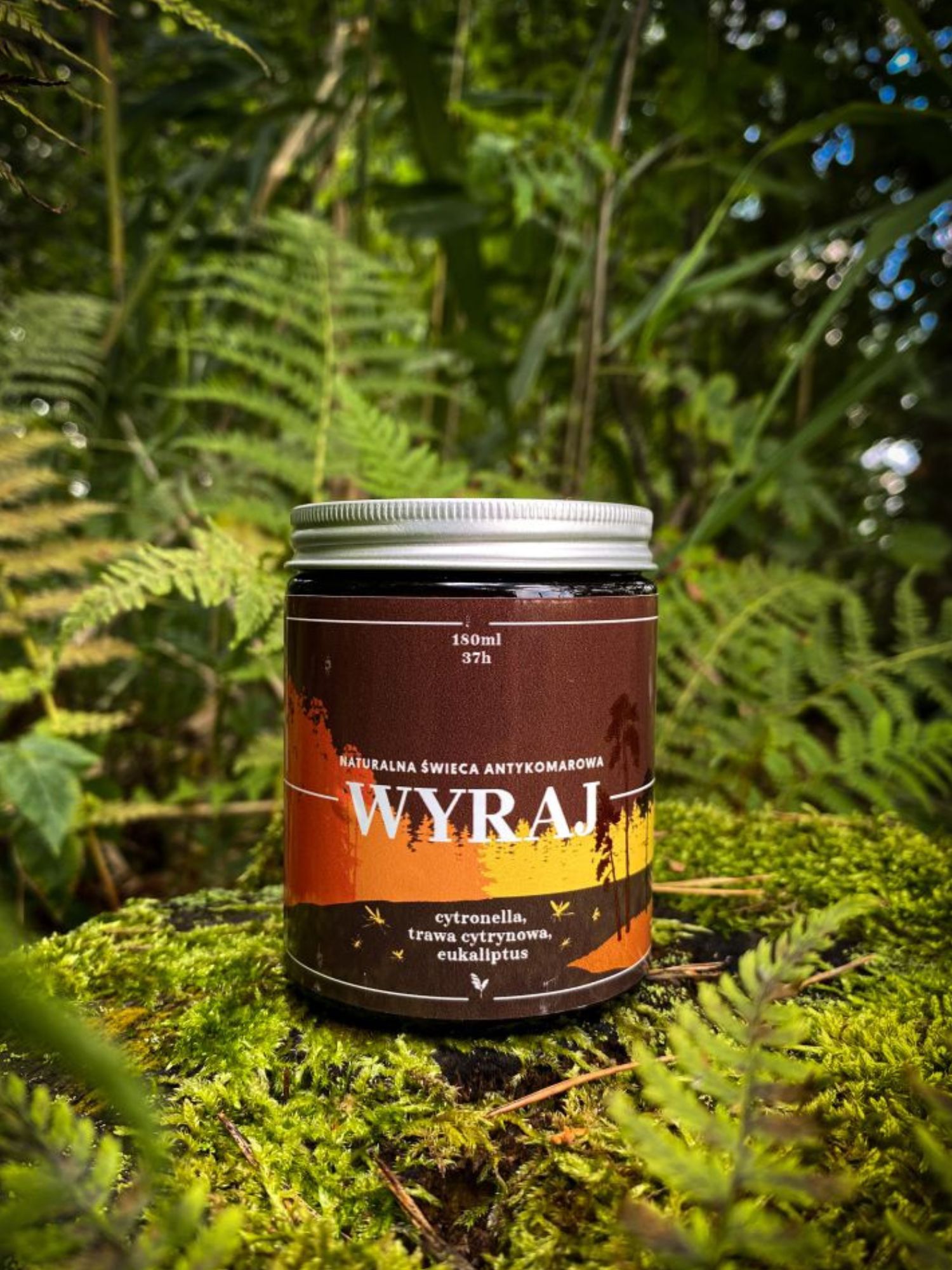 Świeca sojowa Wyraj ANTYKOMAROWA - cytronella, trawa cytrynowa, eukaliptus